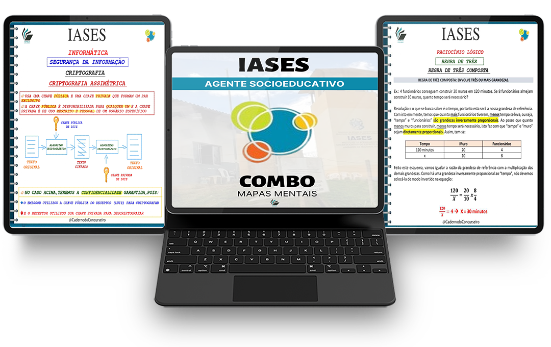 O Combo IASES é um material em PDF - 100% atualizado em forma de MAPAS MENTAIS ESPECÍFICOS (600 mapas) para o concurso do Instituto de Atendimento Socioeducativo do Espírito Santo, elaborado com base no estudo estatístico das questões da banca IDCAP .